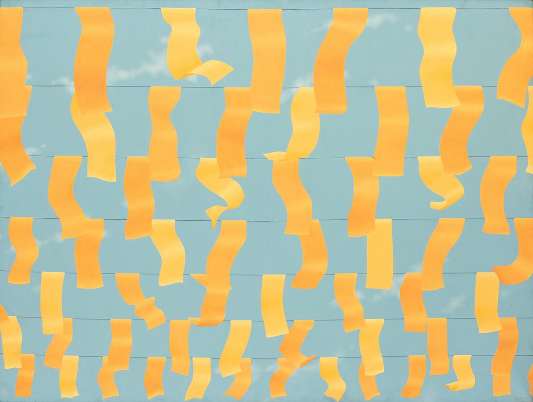 En 1961, Barbro Östlihn débarque à New York avec son mari, Öyvind Fahlström, artiste visuel, critique d’art et auteur reconnu. Ils emménagent dans l’ancien loft de Robert Rauschenberg au sud de Manhattan, qui leur servira à la fois d’appartement et d’atelier commun. Impressionnée par l’architecture imposante autant que par la valse des constructions, destructions et réhabilitations de cette partie de New York, Östlihn développe son propre langage pictural, en marge du pop art et du néo-réalisme alors en vogue. Elle parcourt l’île de jour, appareil photo à la main, et peint la nuit. Ce n’est pas le bouillonnement de la rue qui l’intéresse, mais les façades qui en forment les coulisses et qu’elle traduit sur de grandes toiles par des mosaïques et des macroformes géométriques. Ses tableaux portent souvent les noms des adresses ou des édifices qu’ils représentent.
