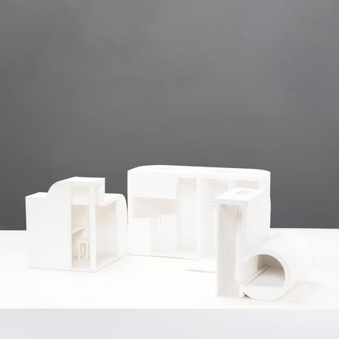 Maquette, carton et peinture blanche, échelle 1/10e.