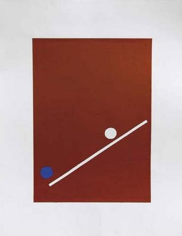 rgba(255,255,255,1) Albert ChubacSans titre ( C_L01_0261_00 )Collage, un cercles en bleu et cercle en blanc en équilibre sur une blanche et fond rouge, carton gouaché, dim 65 x 50 cm© Leclere svv Demande d'information