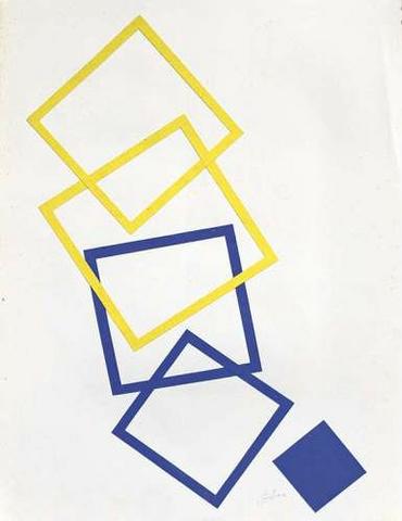 rgba(255,255,255,1) Albert ChubacSans titre ( C_L02_0501_00 )Collage, deux châssis en jaune, deux en bleu et un carré bleu, dim 65 x 50 cm, signé© Leclere svv Demande d'information