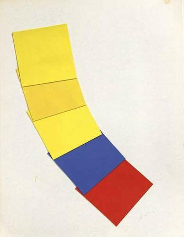 rgba(255,255,255,1) Albert ChubacSans titre ( C_L02_0502_00 )Collage, papiers assemblés en jaune, en bleu et rouge pour former un début de courbe, dim 65 x 50 cm, signé© Leclere svv Demande d'information