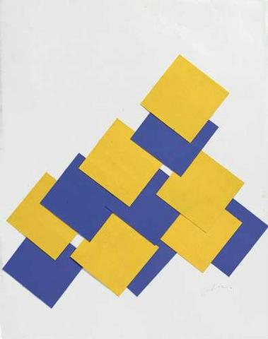 rgba(255,255,255,1) Albert ChubacSans titre ( C_L02_0513_00 )Collage, superposition de carrés en bleu et en jaune, carton gouaché, dim 65 x 50 cm© Leclere svv Demande d'information