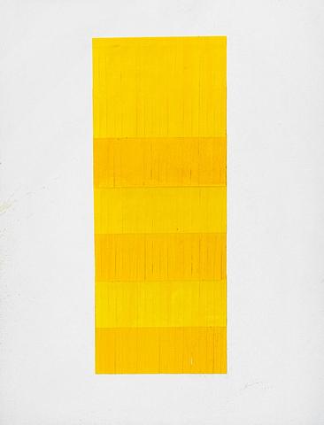 rgba(255,255,255,1) Albert ChubacSans titre ( C_L02_0527_00 )Collage, lamelles de papiers superposées en nuances de jaune pour créer une gamme chromatique verticale, dim 65 x 50 cm, signé et daté 1977© Leclere svv Demande d'information
