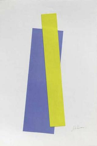 rgba(255,255,255,1) Albert ChubacSans titre ( C_L02_0535_00 )Collage, un rectangle jaune superposé à un rectangle bleu, carton gouaché, dim 65 x 50 cm, signé© Leclere svv Demande d'information