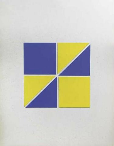 rgba(255,255,255,1) Albert ChubacSans titre ( C_L02_0537_00 )Collage, deux losanges en bleu et jaune et deux triangles en jaune et bleu assemblés pour former un carré, dim 65 x 50 cm© Leclere svv Demande d'information
