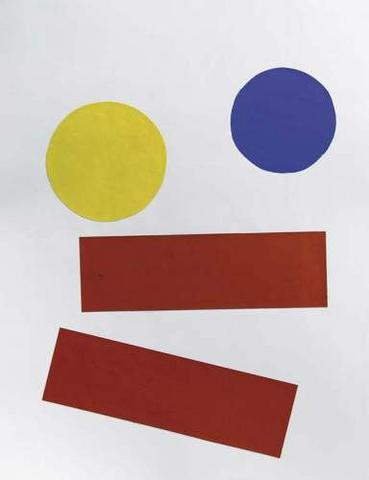 rgba(255,255,255,1) Albert ChubacSans titre ( C_L02_0540_00 )Collage, deux triangles rouges et deux disques en jaune et bleu, dim 65 x 50 cm© Leclere svv Demande d'information