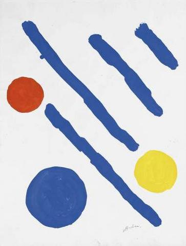 rgba(255,255,255,1) Albert ChubacSans titre ( G_L01_0002_00 )Gouache, traits en bleu pour 3 disques, un en bleu, un en route et un en jaune, dim 65 x 50 cm, signée© Leclere svv Demande d'information