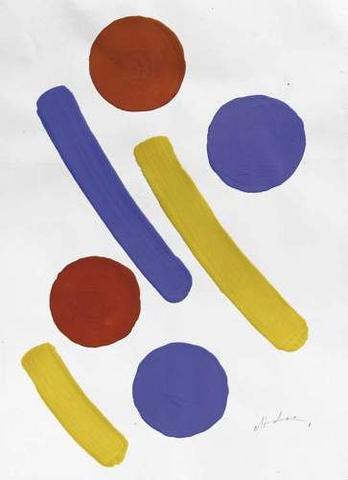 rgba(255,255,255,1) Albert ChubacSans titre ( G_L01_0003_00 )Gouache, deux traits en jaune pour un trait en bleu, deux disques en rouge pour deux disques en bleu, dim 65 x 50 cm, signée© Leclere svv Demande d'information