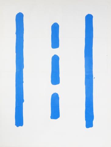 rgba(255,255,255,1) Albert ChubacSans titre ( G_L01_0035_00 )Gouache, deux ligne longues en bleu pour une ligne bleue en pointillée sur papiers assemblés, dim 65 x 50 cm© Oneartyminute Demande d'information