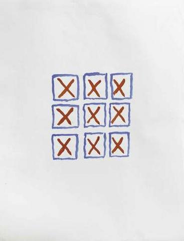 rgba(255,255,255,1) Albert ChubacSans titre ( G_L02_0346_00 )Gouache, 9 carrés en bleu cochés d'une croix rouge, dim 65 x 50 cm© Leclere svv Demande d'information