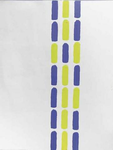 rgba(255,255,255,1) Albert ChubacSans titre ( G_L02_0358_00 )Gouache, ensemble de traits bleus verticaux répartis sur trois colonnes et parsemés de traits jaunes, dim 65 x 50 cm© Leclere svv Demande d'information