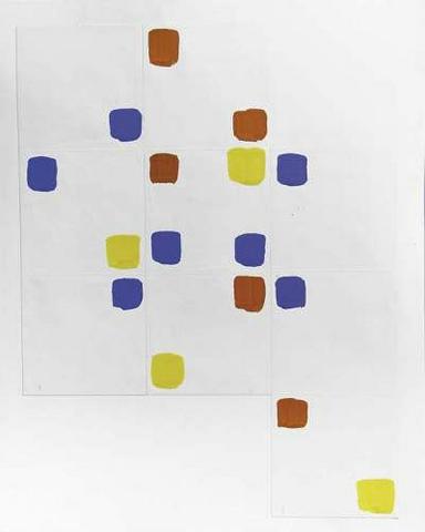 rgba(255,255,255,1) Albert ChubacSans titre ( G_L02_0363_00 )Gouache, séries de carrés en jaune, en rouge et en bleu sur papiers assemblés moins deux carrés, dim 65 x 50 cm© Leclere svv Demande d'information