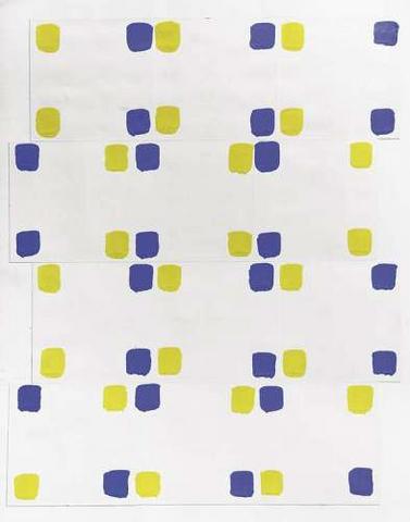 rgba(255,255,255,1) Albert ChubacSans titre ( G_L02_0366_00 )Gouache, ensemble de carrés en jaune et en bleu sur papiers assemblés, dim 65 x 50 cm© Leclere svv Demande d'information