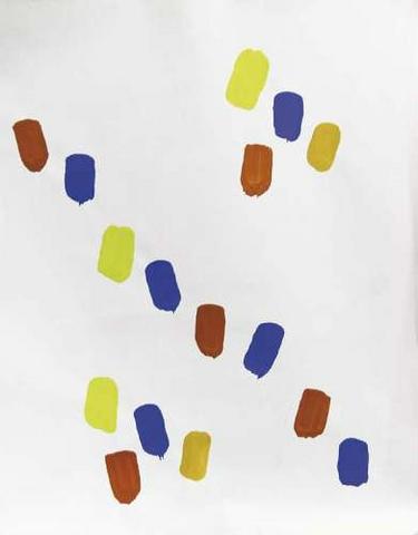 rgba(255,255,255,1) Albert ChubacSans titre ( G_L02_0368_00 )Gouache, ensemble de traits obliques en bleu, rouge, jaune, dim 65 x 50 cm© Leclere svv Demande d'information