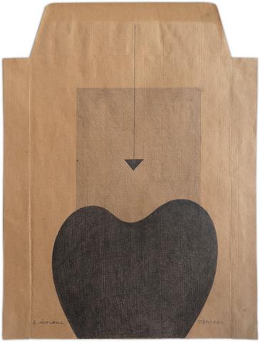 Dessin au crayon sur enveloppe, titré " le crève-coeur " en bas à gauche et signé " STEMPFEL " en bas à droite.