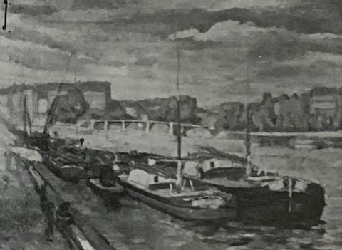 rgba(255,255,255,1) Armand GuillauminPéniches au bord de la Seine, ParisHuile sur toile, 32 x 40 cm, circa 1880.