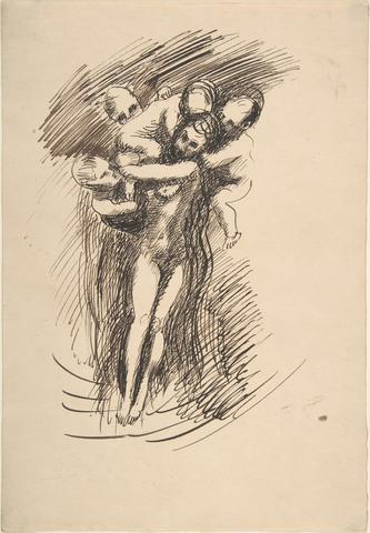 rgba(255,255,255,1) Auguste RodinEtude pour Les PrintempsPen and light and dark brown inks on buff-colored paper, 25.3 x 17.3 cm.© MET