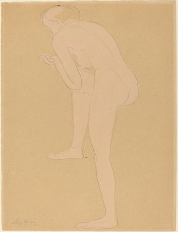 rgba(255,255,255,1) Auguste RodinFemme courbée vers l'avant avec genou droit soulevéDessin, crayon et aquarelle, 33 x 25 cm, sd.© NGA