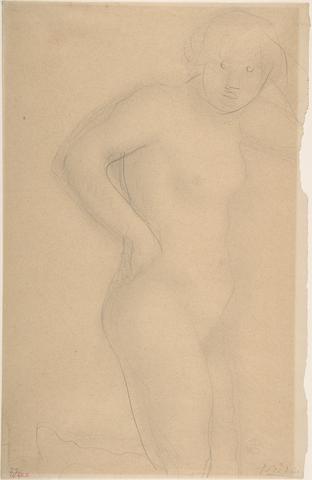 rgba(255,255,255,1) Auguste RodinJeune fille à genouxGraphite, stumped on cream paper, 32 x 19.5 cm.© MET