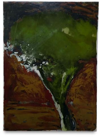 rgba(255,255,255,1) Patrick BailletARBRE VERT SUR FOND ROUGE - 2020B-XXXX-43841Acrylique et gomme laque sur toile, 100 x 73 cm© Patrick Baillet studio