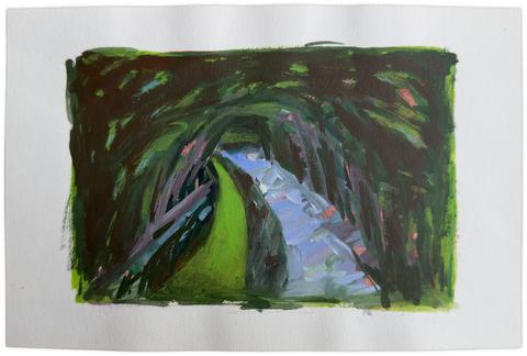 rgba(255,255,255,1) Bernadette DelrieuRoute près de Dinan, 1993Peinture acrylique sur papier, 12 x 16,5 cm.© Demande d'information