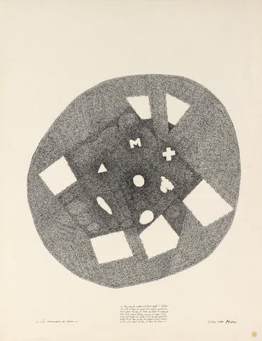 rgba(255,255,255,1) Bruno MendonçaLa Connaissance des lignesDessin-écriture, encre sur papier, 65 x 50 cm, 1977.© François Fernandez
