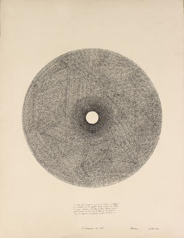 rgba(255,255,255,1) Bruno MendonçaLa Connaissance du cercleDessin-écriture, encre sur papier, 65 x 50 cm, 1977.© François Fernandez