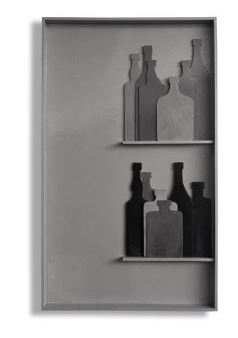 rgba(255,255,255,1) Claude GilliBouteilles et flacons — 1965Bois découpé peints et assemblés.Hauteur: 100 cm — 60 cm.© Archives Claude Gilli