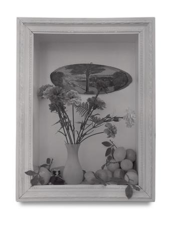 rgba(255,255,255,1) Claude GilliEx-voto (oeillets et fruits) — circa 1963Assemblage d'objets, fleurs, fruits et peinture miniature.Dimensions inconnues.© Archives Claude Gilli Demande d'information