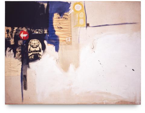 Acrylique, encre et collage sur toile, 97 x 130 cm.