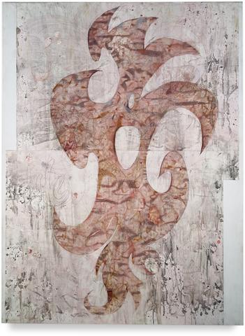 rgba(255,255,255,1) Daniel Boursin2F sharp limbs — 2000peinture et collages sur papiers assemblés, ensemble marouflé sur toile, 130 x 97 cm, 2000© Archives Daniel Boursin Demande d'information