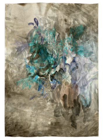 rgba(255,255,255,1) Daniel Boursindeep turquoise ocre — 2017acrylique, gouache et feutre, 63,5 x 45 cm, 2017oeuvre datée au dos "2017"© Archives Daniel Boursin Demande d'information