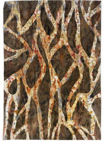 acrylique, gouache et brou de noix sur papier, 100 x 70 cm, 2002