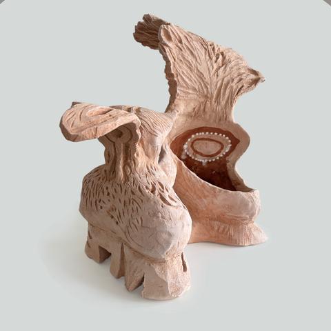 rgba(255,255,255,1) Daniel Boursinmon double végétal — 2023faience terre rouge, hauteur 41 cm largeur 43 cm profondeur 29 cm, 2023© Archives Daniel Boursin Demande d'information