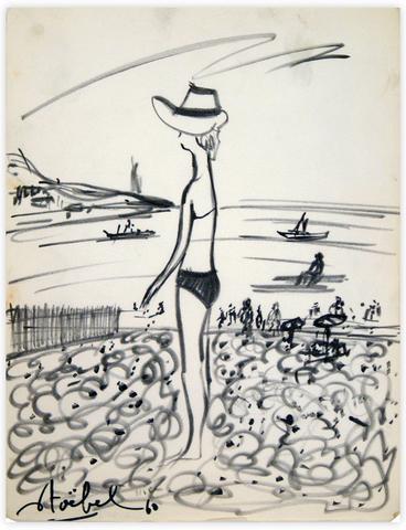 rgba(255,255,255,1) Edgar StoëbelNice - la plage — 1960feutre sur papier, 22.8 x 30.5 cm© Edgar Stoëbel Demande d'information