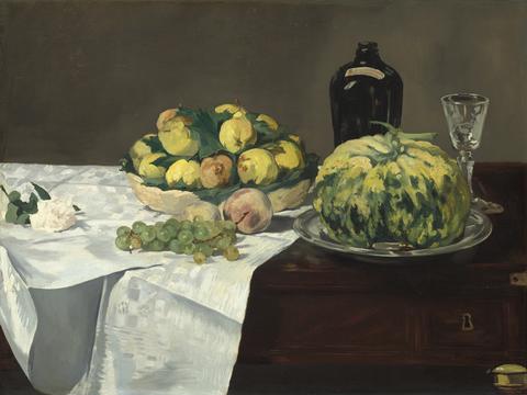 rgba(255,255,255,1) Edouard ManetNature morte au melon et aux pêchesHuile sur toile, 68.3 x 91 cm, ca. 1866.© NGA