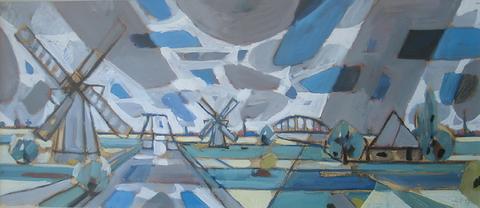 rgba(255,255,255,1) Hans SeilerDeux moulins et deux ponts, 195725 x 58 cmHollandeGouache, signée et datée en bas à droite © Hans Seiler archives Demande d'information