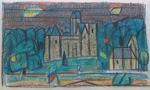 rgba(255,255,255,1) Hans SeilerFayrac et sa chapelle 2, circa 194211,5 x 18 cmPérigordCrayon de couleur, Non signé© Hans Seiler archives Demande d'information