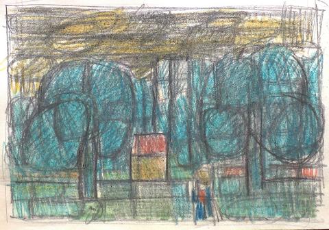 rgba(255,255,255,1) Hans SeilerLa petite grange 2, circa 194210,5 x 14 cmPérigordCrayon de couleur, Non signé© Hans Seiler archives Demande d'information
