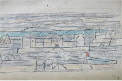 rgba(255,255,255,1) Hans SeilerLa Sardinerie, circa 194213 x 27 cmBretagneCrayon de couleur sur papier.© Hans Seiler archives Demande d'information
