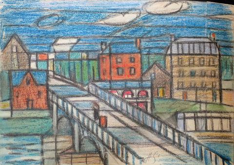 rgba(255,255,255,1) Hans SeilerLe pont de Chennevières 1, circa 194214 x 19,5 cmChennevièresCrayon de couleur, Non signé© Hans Seiler archives Demande d'information