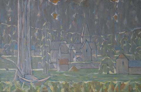 rgba(255,255,255,1) Hans SeilerL'église de Lacassagne, 197653 x 80 cmPérigordHuile sur toile, signée et datée en bas à droite © Hans Seiler archives Demande d'information