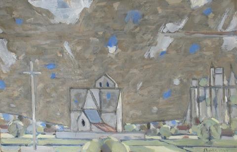 rgba(255,255,255,1) Hans SeilerL'église de Vézac, 196421,5 x 33 cmPérigordGouache, signée et datée en bas à droite © Hans Seiler archives Demande d'information