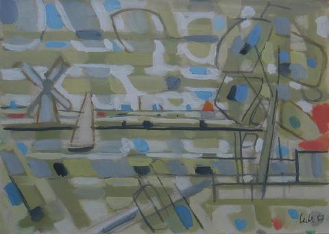 rgba(255,255,255,1) Hans SeilerPaysage de Hollande, 195725 x 34 cmHollandeGouache, signée et datée en bas à droite © Hans Seiler archives Demande d'information