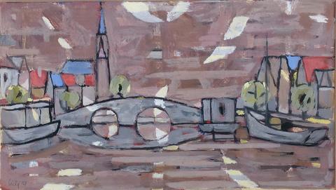 rgba(255,255,255,1) Hans SeilerPetit pont à Amsterdam, 195816 x 28 cmHollandeGouache, signée et datée en bas à gauche © Hans Seiler archives Demande d'information