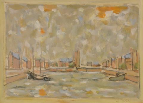 rgba(255,255,255,1) Hans SeilerPetit port du Nord, circa 196214,5 x 20 cmHollandeGouache, signée en bas à droite © Hans Seiler archives Demande d'information