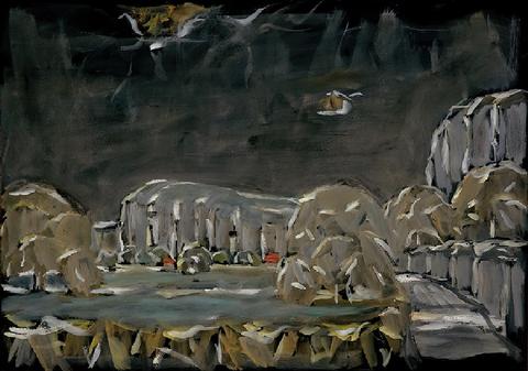 rgba(255,255,255,1) Hans SeilerVue de la Roque sombre, 198635 x 50 cmPérigordGouache, signée en bas à droite © Hans Seiler archives Demande d'information