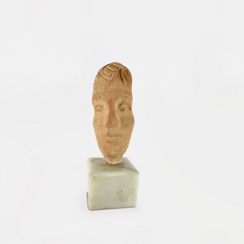 Sculpture en terre cuite posée sur un socle, signée "Ambellan" en lettres incisées sur le socle.