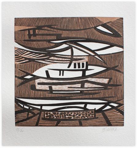 rgba(255,255,255,1) Henri BavieraAHIBA — 2016Linogravure sur papier d’Arches, 22 x 20 cm pour une feuille de 40 x 38 cm.Tirage incomplet à 20 exemplaires et 10 EA.© Atelier Henri Baviera Demande d'information