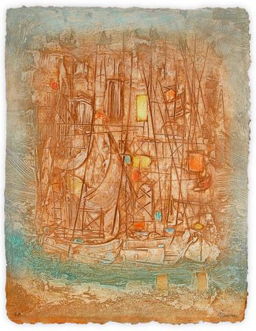 rgba(255,255,255,1) Henri BavieraVENOVIA — 2003Gravure polychromie-relief sur papier Larroque, 65 x 51 cm pour une feuille de 65 x 51 cm.Tirage incomplet à 50 exemplaires.© Atelier Henri Baviera Demande d'information
